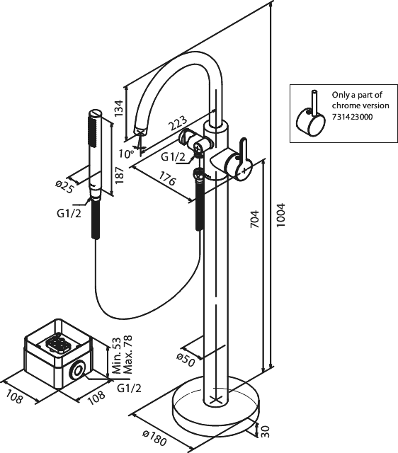 Damixa Silhouet Bateria wannowa wolnostojąca szczotkowany grafit pvd 731425500