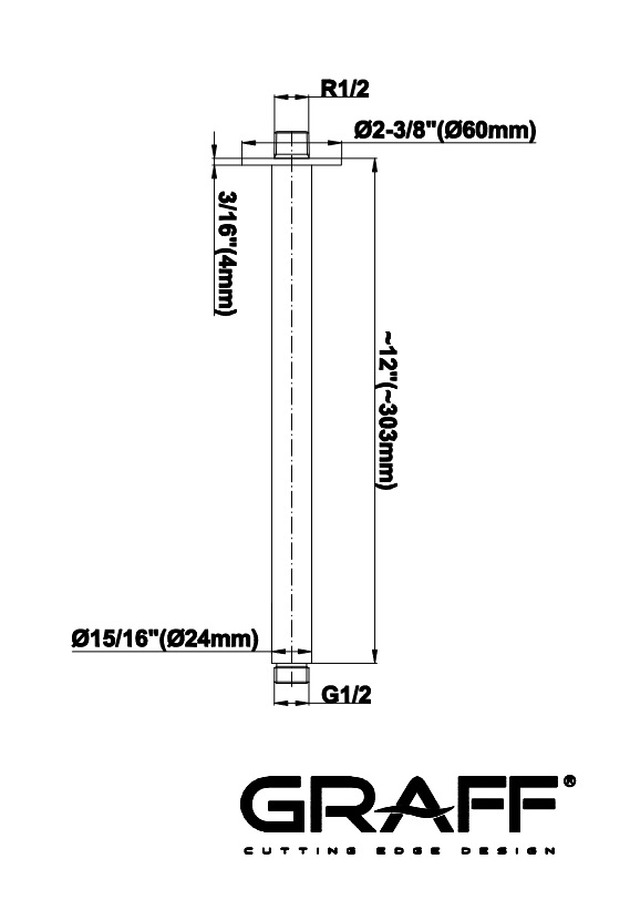 Graff Ramie sufitowe 303 mm do deszczownicy Chrom E-8541