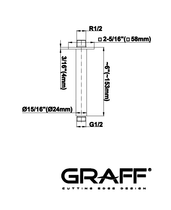 Graff Ramie sufitowe 153 mm do deszczownicy Chrom E-8537