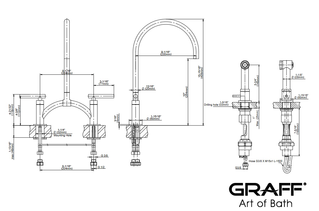 Graff Sospiro Bateria kuchenna nablatowa ze słuchawką Chrom E-4895-LM49