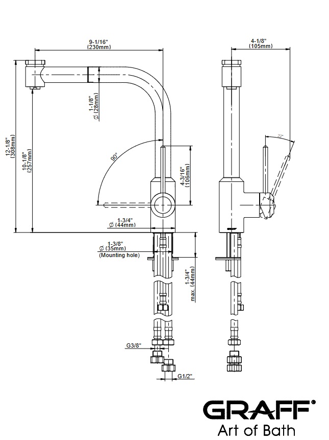 Graff ME Bateria kuchenna nablatowa z dwufunkcyjną głowicą natryskową/strumieniową Chrom E-4625-LM41K