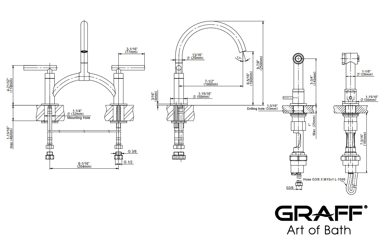 Graff Sospiro-Bar Bateria kuchenna nablatowa ze słuchawką Chrom E-5895-LM49