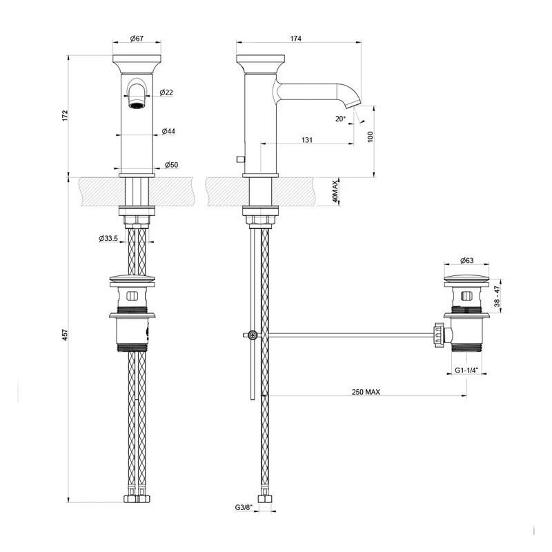 Gessi Origini Bateria umywalkowa z korkiem Chrom 66001.031