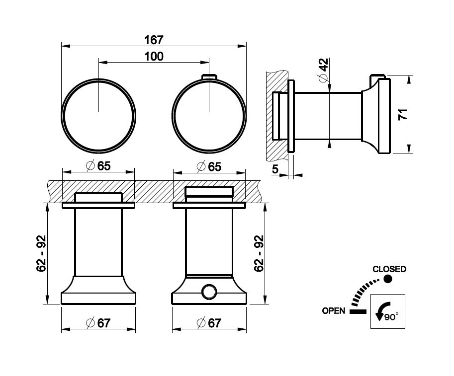 Średnica rozet: 65 mm