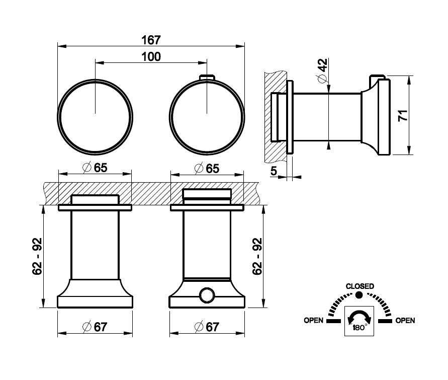 Gessi Origini Bateria natryskowa termostatyczna 2-otworowa podtynkowa 2-drożna - element zewnętrzny Chrom 66134.031