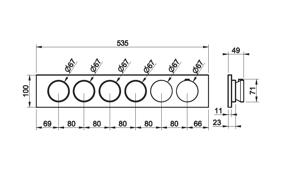 Gessi Origini Bateria natryskowa termostatyczna 6-uchwytowa podtynkowa 4-drożna - element zewnętrzny Chrom 66226.031