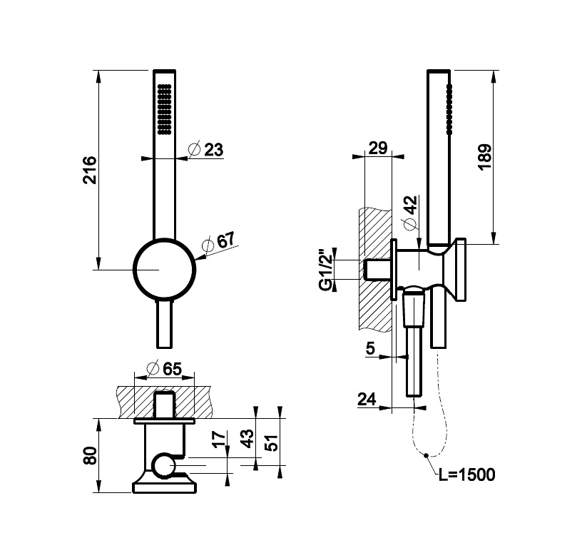 Gessi Origini Słuchawka prysznicowa z uchwytem ściennym Chrom 66123.031