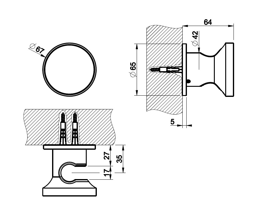 Średnica rozety: 65 mm