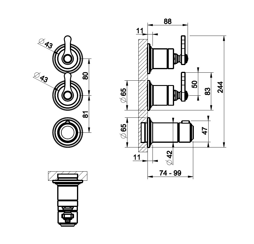 Gessi Venti20 Bateria termostatyczna + 2 zawory element zewnętrzny chrom 65334.031