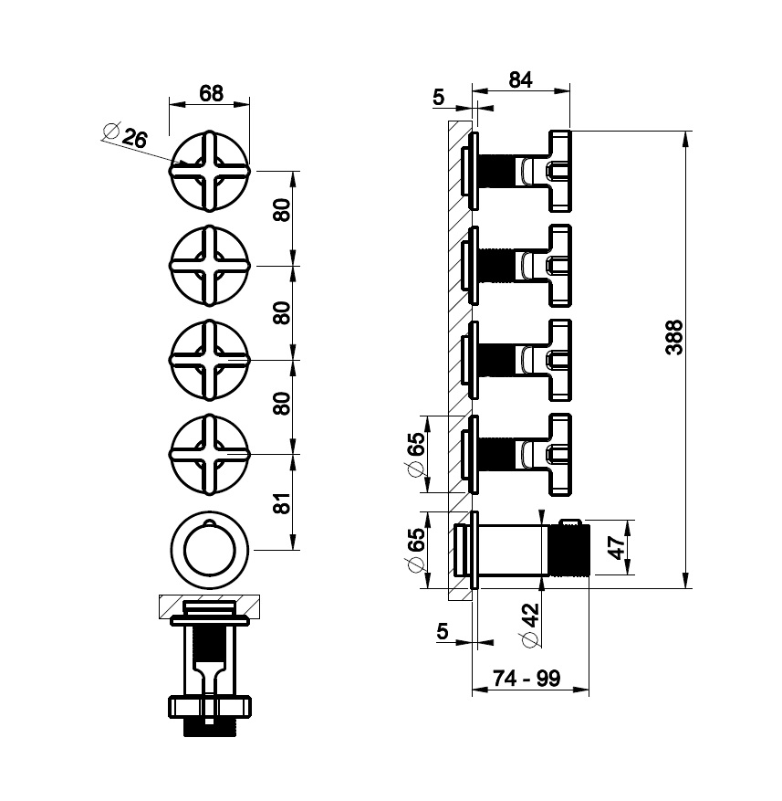 Gessi Inciso Shower Bateria natryskowa termostatyczna 5-uchwytowa podtynkowa 4-drożna - element zewnętrzny Black Metal Brushed PVD 58438.707