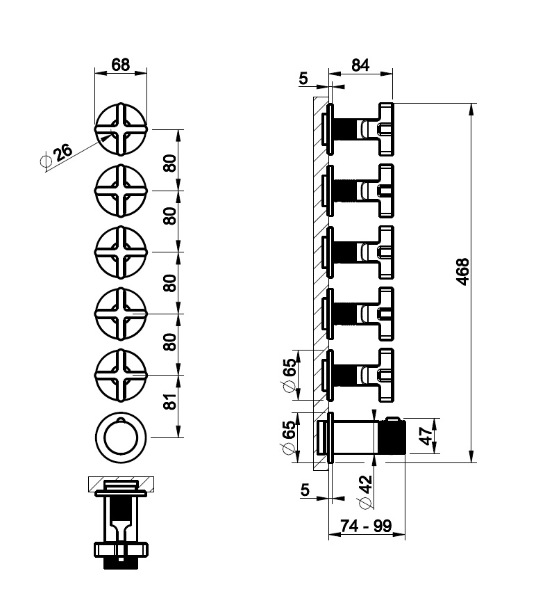 Gessi Inciso Shower Bateria natryskowa termostatyczna 6-uchwytowa podtynkowa 5-drożna - element zewnętrzny Black Metal Brushed PVD 58440.707