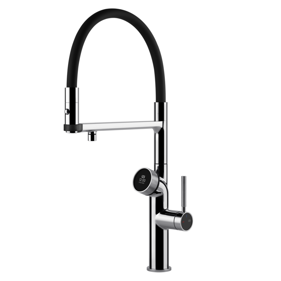 Woda filtrowana, jakiej potrzebujesz – system pozwala na wybór rodzaju wody: zimnej, filtrowanej, gazowanej oraz gorącej (w tym wrzątku do 100°). Wszystko to dostępne jednym ruchem, prosto z Twojej baterii.