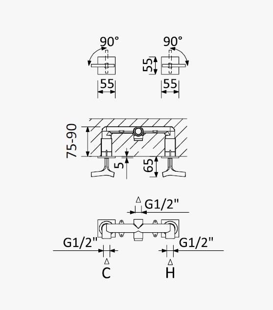 Głębokość montażu: 75 - 90 mm