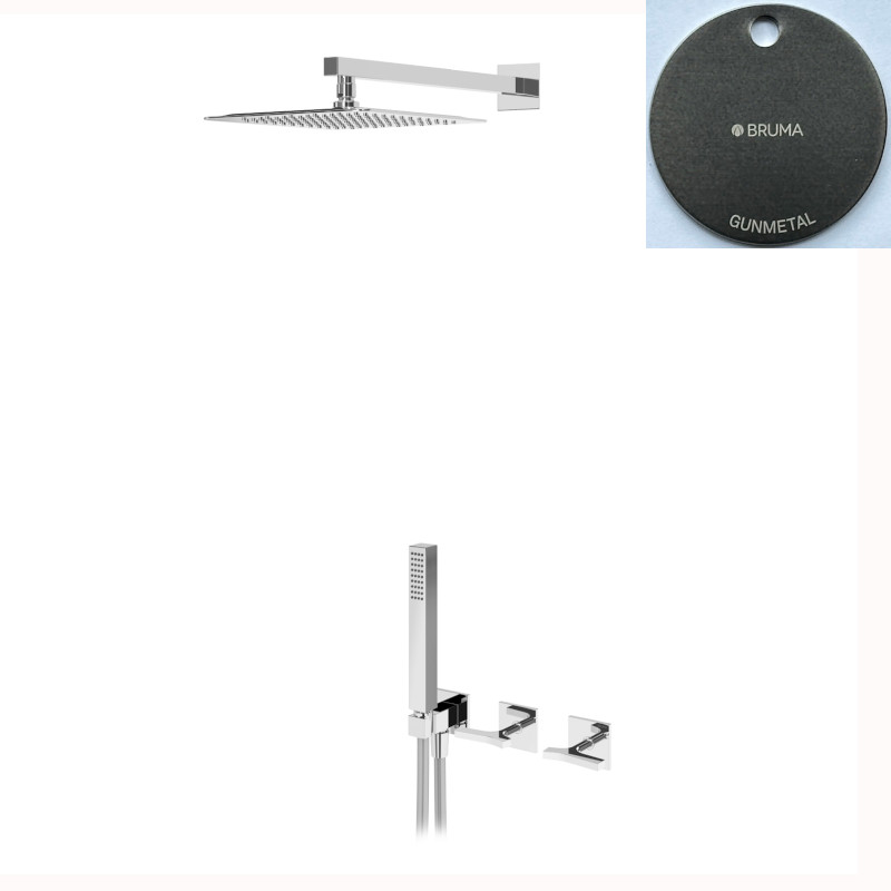 Bruma Royale Zestaw natryskowy podtynkowy z deszczownicą ścienną 250x250 mm i słuchawką prysznicową Gunmetal 1927421MG