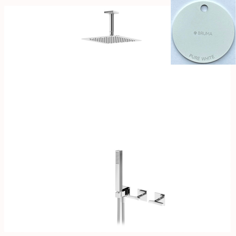 Bruma Royale Zestaw natryskowy podtynkowy z deszczownicą sufitową 250x250 mm i słuchawką prysznicową Pure White 1927521PW