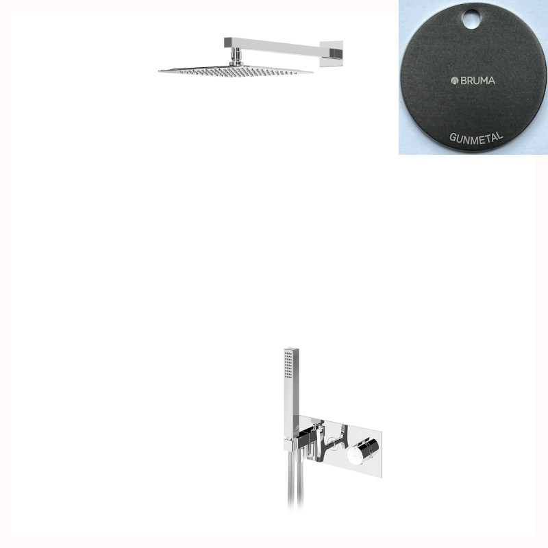Bruma Royale Zestaw termostatyczny natryskowy podtynkowy z deszczownicą ścienną 250x250 mm i słuchawką prysznicową Gunmetal 1927821MG