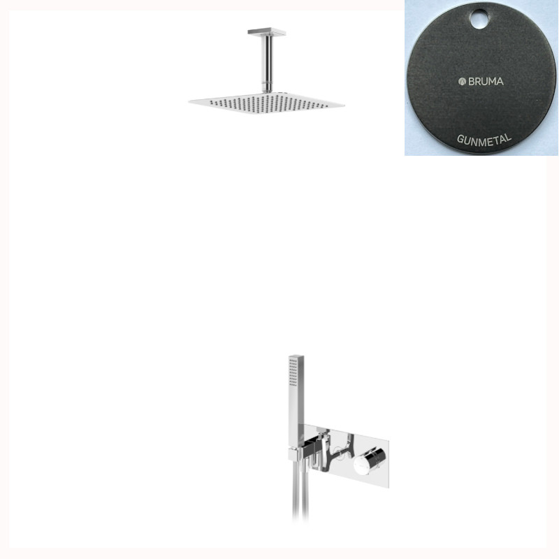 Bruma Royale Zestaw termostatyczny natryskowy podtynkowy z deszczownicą sufitową 250x250 mm i słuchawką prysznicową Gunmetal 1927921MG