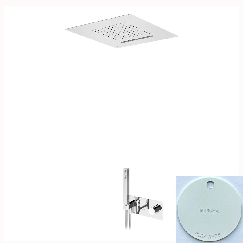 Bruma Royale Zestaw termostatyczny natryskowy podtynkowy z deszczownicą montowaną w sufit ze strumieniem kaskadowym 500x500 mm i słuchawką prysznicową Pure White 1927881PW