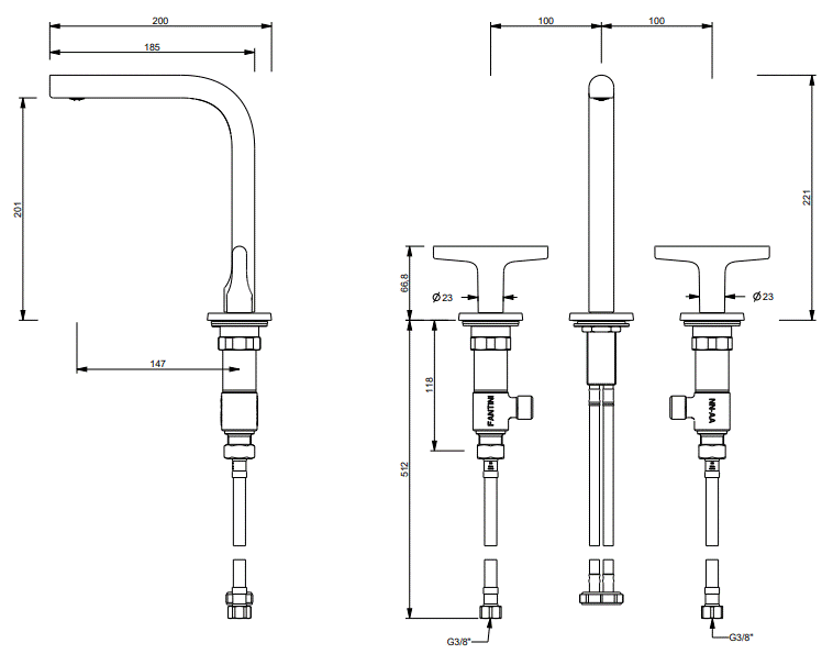 Fantini Sailing Bateria umywalkowa matt gunmetal pvd 67P5J007W