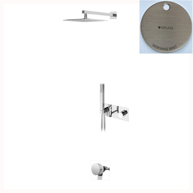 Bruma Royale Bateria termostatyczna wannowo-natryskowa podtynkowa z deszczownicą ścienną 250x250 mm i zestawem natryskowym oraz napełnianiem przez przelew Morning Mist 1925021MM