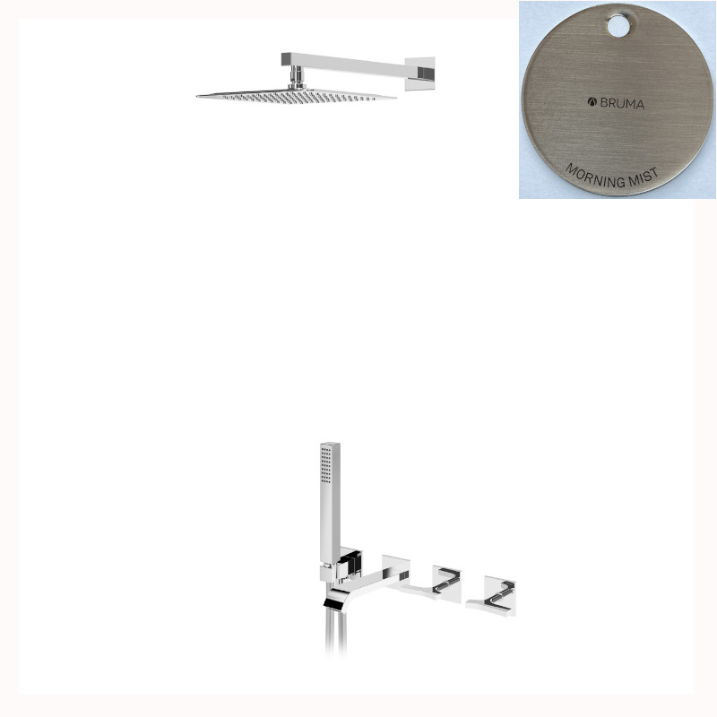 Bruma Royale Bateria wannowo-natryskowa podtynkowa z deszczownicą ścienną 250x250 mm i zestawem natryskowym Morning Mist 1923121MM
