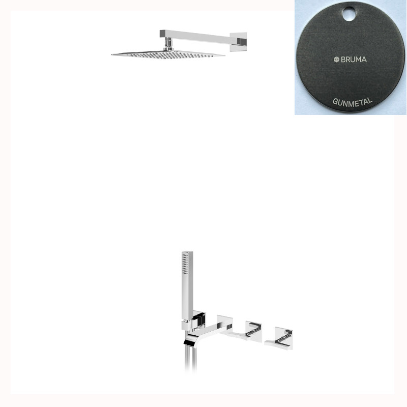 Bruma Royale Bateria wannowo-natryskowa podtynkowa z deszczownicą ścienną 250x250 mm i zestawem natryskowym Gunmetal 1923121MG