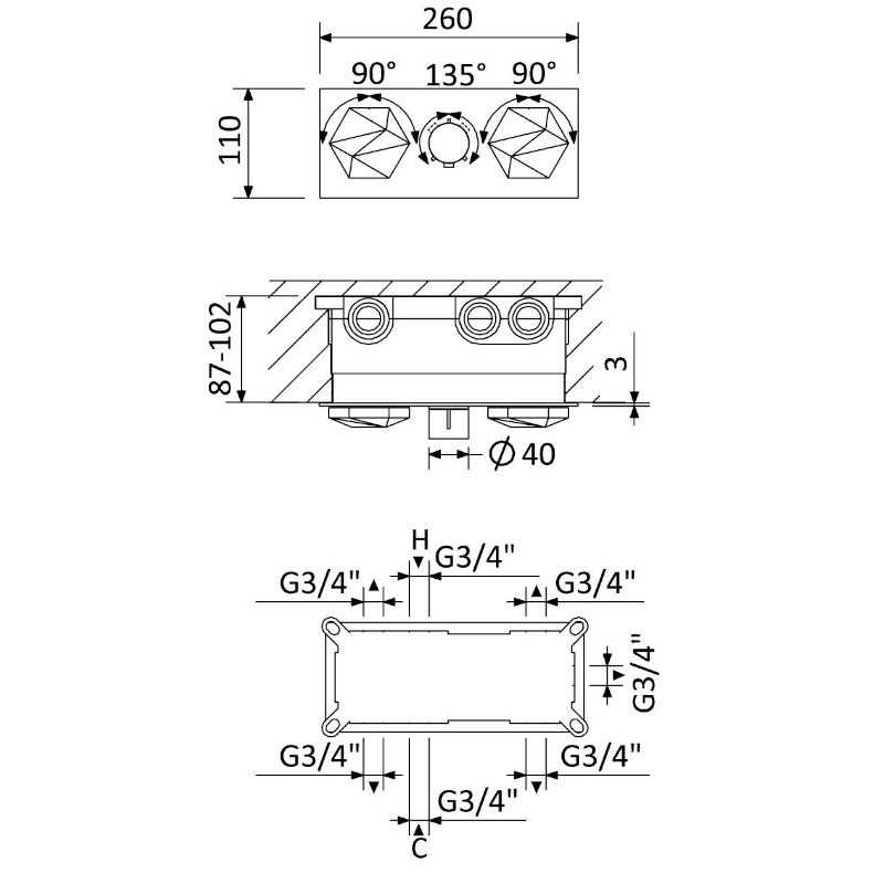 Przełącznik 5-drożny, podtynkowy z elementem montażowym podtynkowym w komplecie.