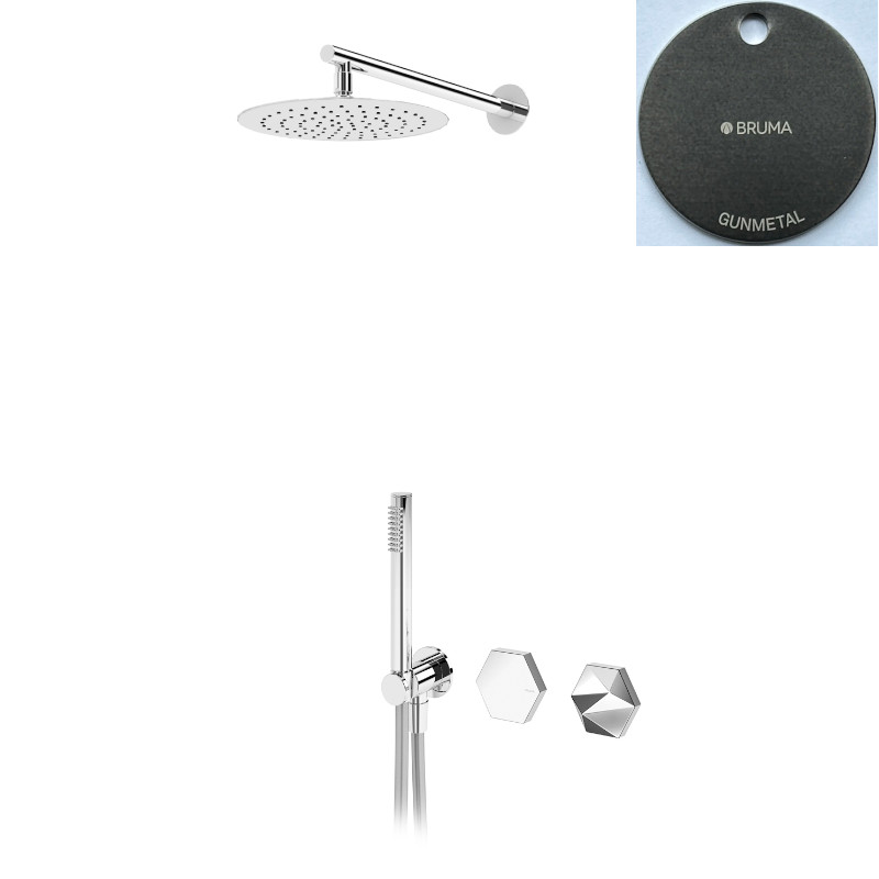 Bruma Utopia Zestaw natryskowy podtynkowy z deszczownicą Ø 250 mm ścienną i słuchawką Gunmetal 1837420MG