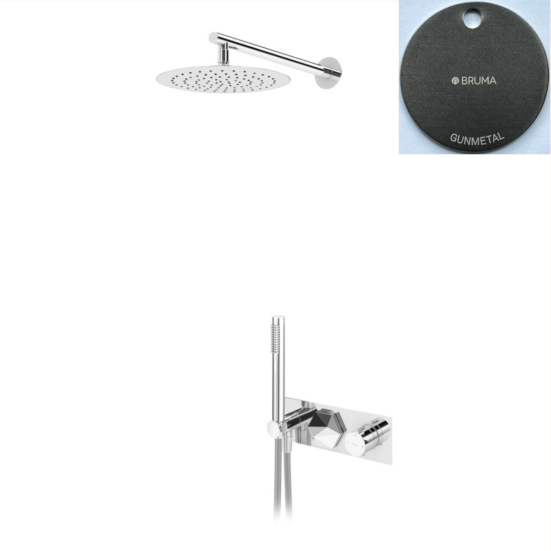 Bruma Utopia Zestaw natryskowy podtynkowy z deszczownicą Ø 250 mm ścienną i słuchawką Gunmetal 1837821MG