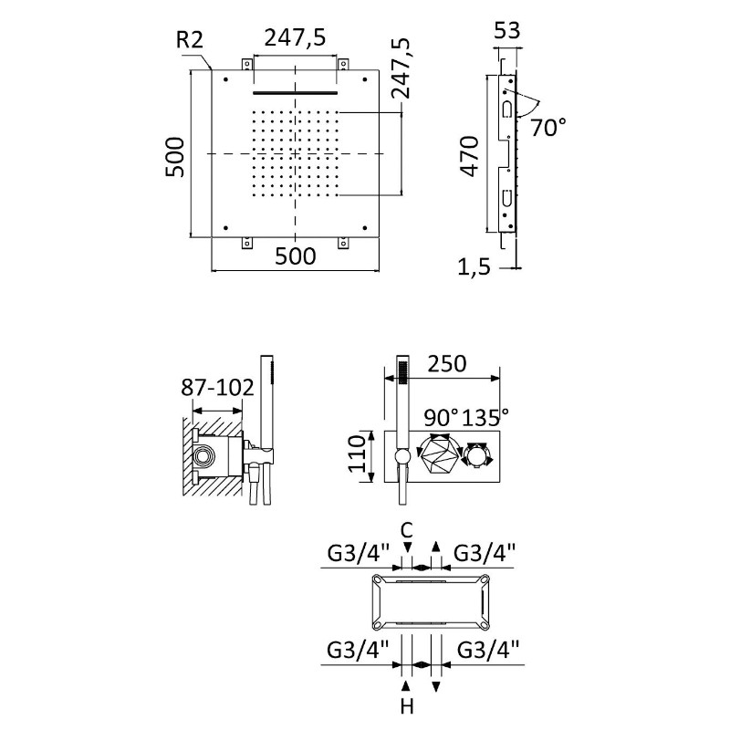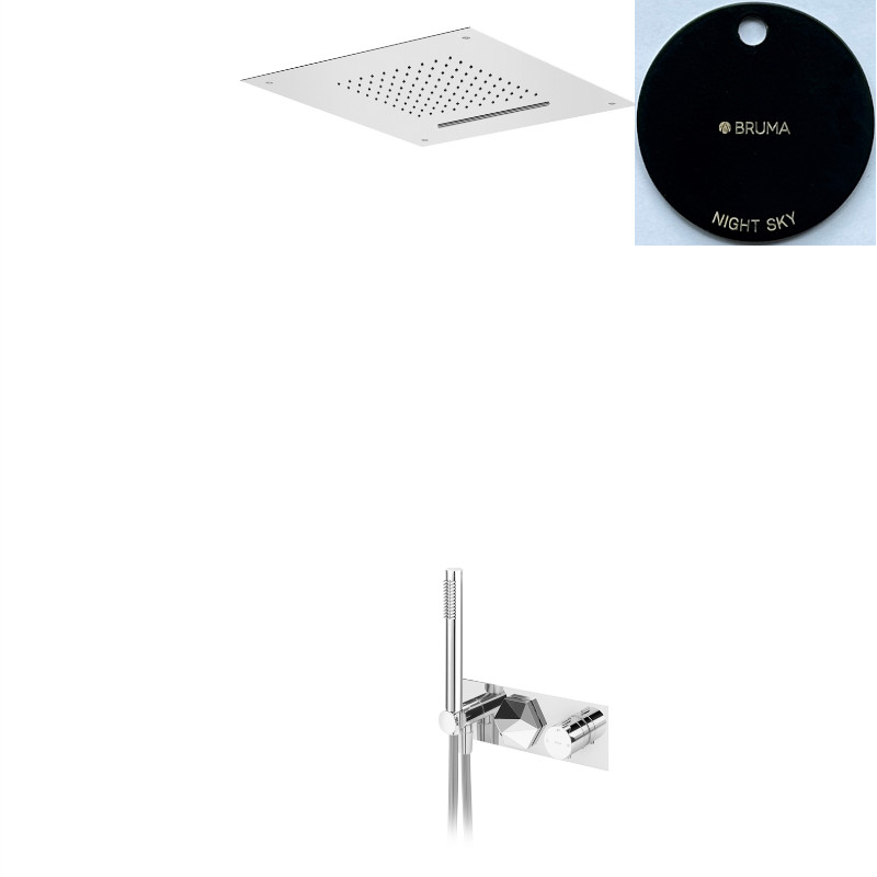 Bruma Utopia Zestaw natryskowy termostatyczny podtynkowy z deszczownicą 500x500 mm sufitową i słuchawką Night Sky 1837881NS