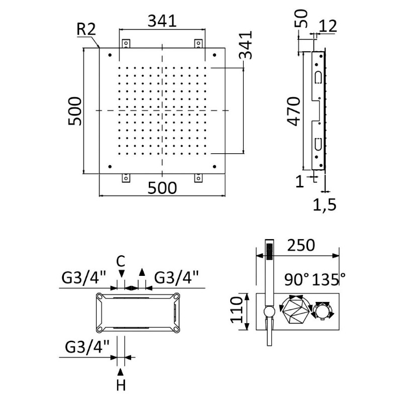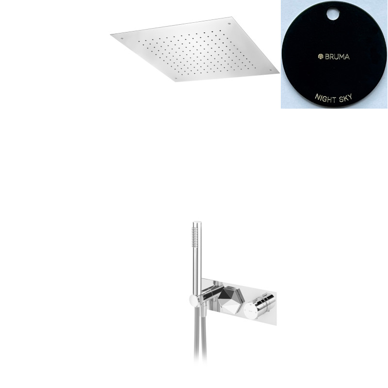 Bruma Utopia Zestaw natryskowy termostatyczny podtynkowy z deszczownicą 500x500 mm sufitową i słuchawką Night Sky 1837871NS