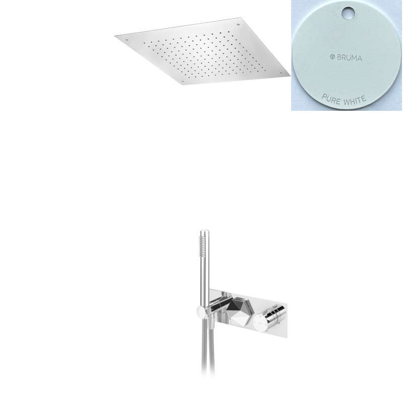 Bruma Utopia Zestaw natryskowy termostatyczny podtynkowy z deszczownicą 500x500 mm sufitową i słuchawką Pure White 1837871PW