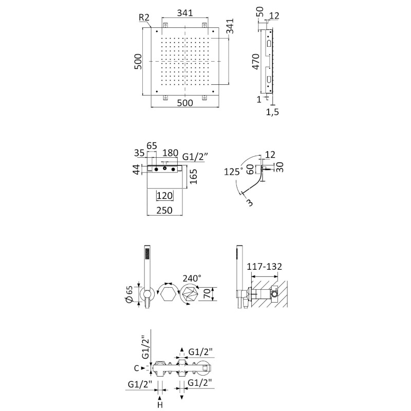 Zestaw składa sie z deszczownicy montowaniej w suficie, wylewki kaskadowej seri Luna,