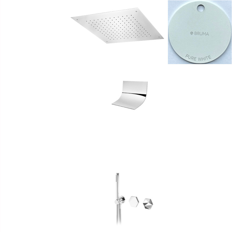 Bruma Utopia Zestaw natryskowy podtynkowy z deszczownicą sufitową, wylewką kaskadową i słuchawką Pure White 1835500PW