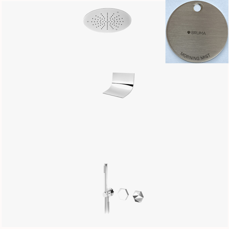 Bruma Utopia Zestaw natryskowy podtynkowy z deszczownicą sufitową, wylewką kaskadową i słuchawką Morning Mist 1835530MM