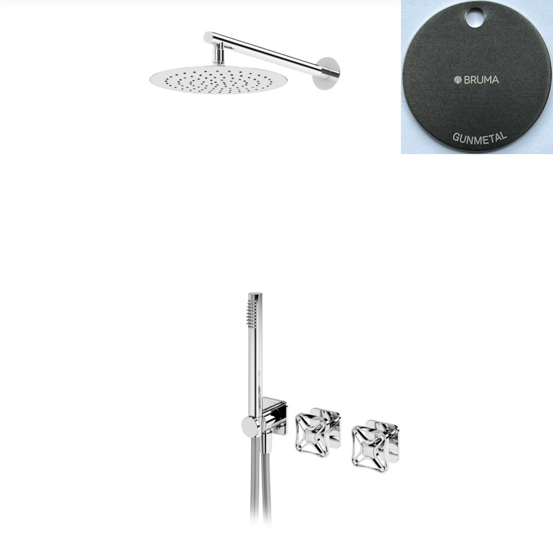 Bruma Navy Zestaw natryskowy z deszczownicą ścienną Ø 250 mm i słuchawką prysznicową Gunmetal 1907421MG