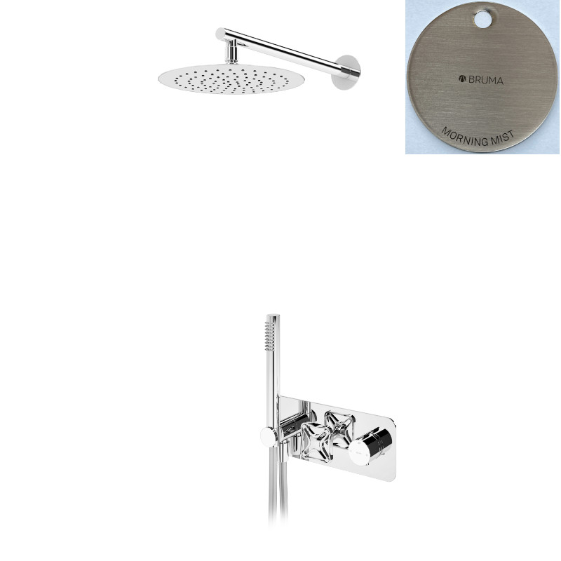 Bruma Navy Zestaw natryskowy termostatyczny z deszczownicą ścienną Ø 250 mm i słuchawką prysznicową Morning Mist 1907821MM