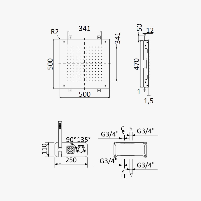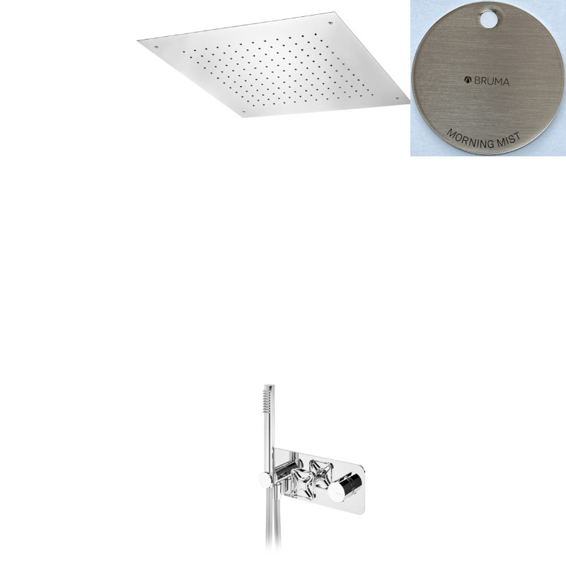 Bruma Navy Zestaw natryskowy termostatyczny z deszczownicą sufitową 500x500 mm i słuchawką prysznicową Morning Mist 1907871MM