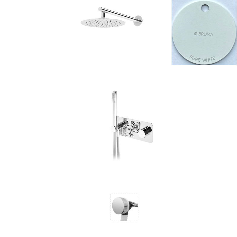 Bruma Navy Bateria termostatyczna wannowo-natryskowa podtynkowa z deszczownicą ścienną Ø 250 mm z zestawem natryskowym i napełnianiem przez przelew Pure White 1905021PW