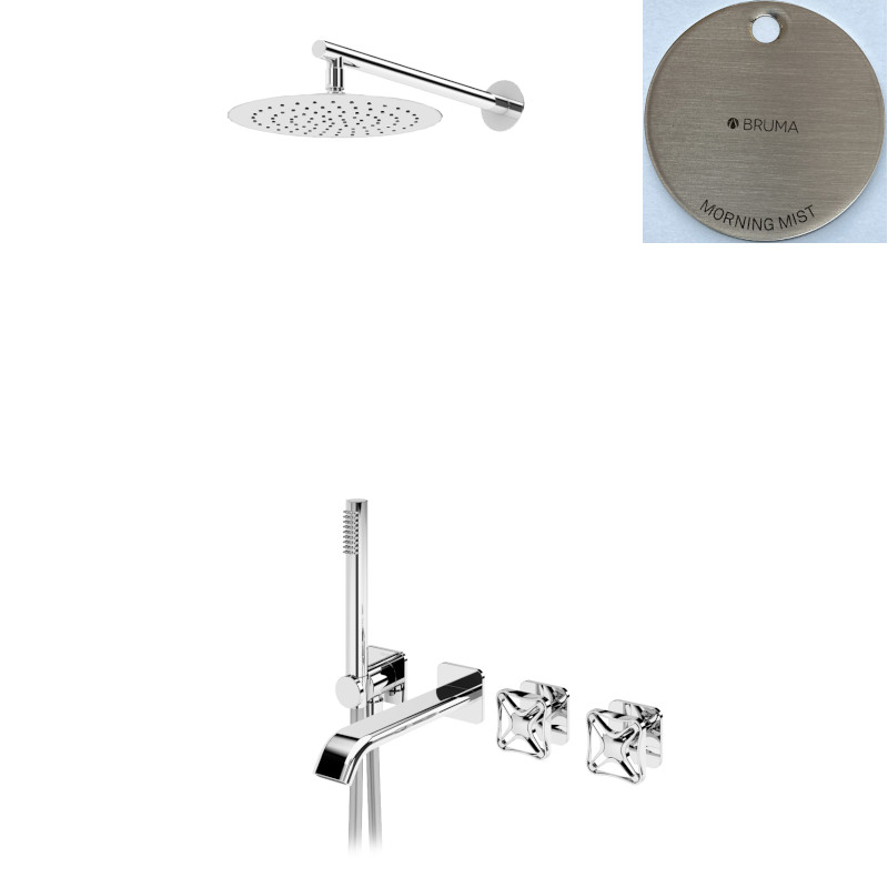 Bruma Navy Bateria Wannowo-natryskowa podtynkowa z deszczownicą ścienną Ø 250 mm i zestawem natryskowym Morning Mist 1903121MM