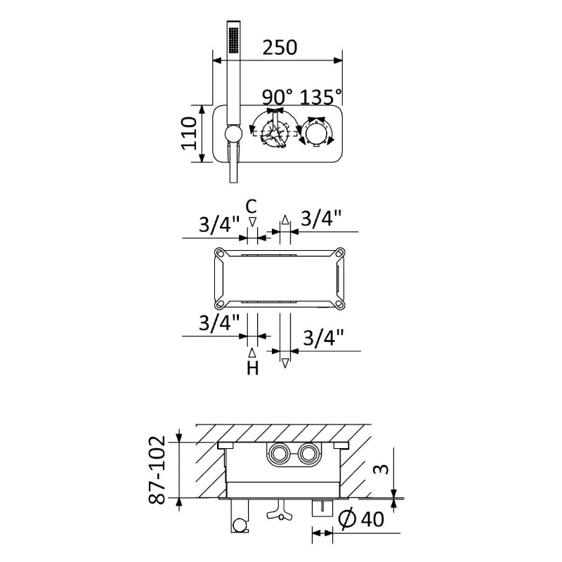 Bruma Genesi Bateria natryskowa termostatyczna podtynkowa ze słuchawką prysznicową Sunset 1912801SS