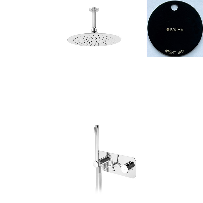 Bruma Genesi Zestaw prysznicowy podtynkowy termostatyczny z deszczownicą sufitową Ø 250 mm i słuchawką prysznicową Night Sky 1917921NS