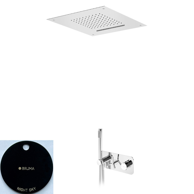 Bruma Genesi Zestaw prysznicowy podtynkowy termostatyczny z deszczownicą sufitową 500x500mm ze strumieniem kaskadowym i słuchawką prysznicową Night Sky 1917881NS