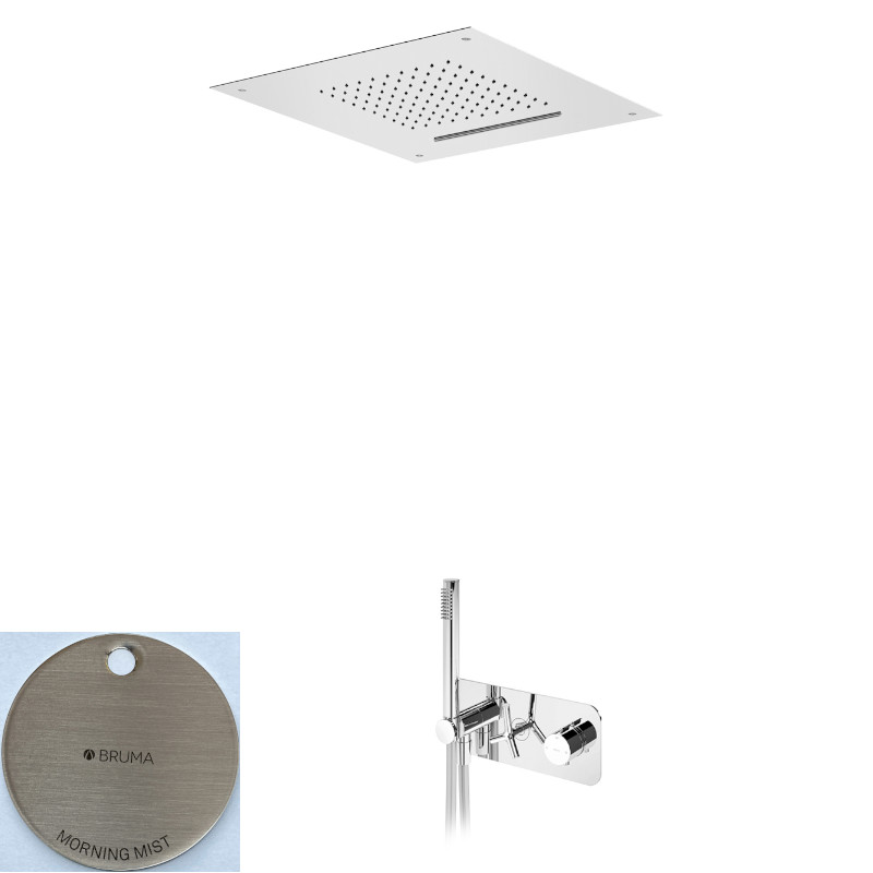 Bruma Genesi Zestaw prysznicowy podtynkowy termostatyczny z deszczownicą sufitową 500x500mm ze strumieniem kaskadowym i słuchawką prysznicową Morning Mist 1917881MM
