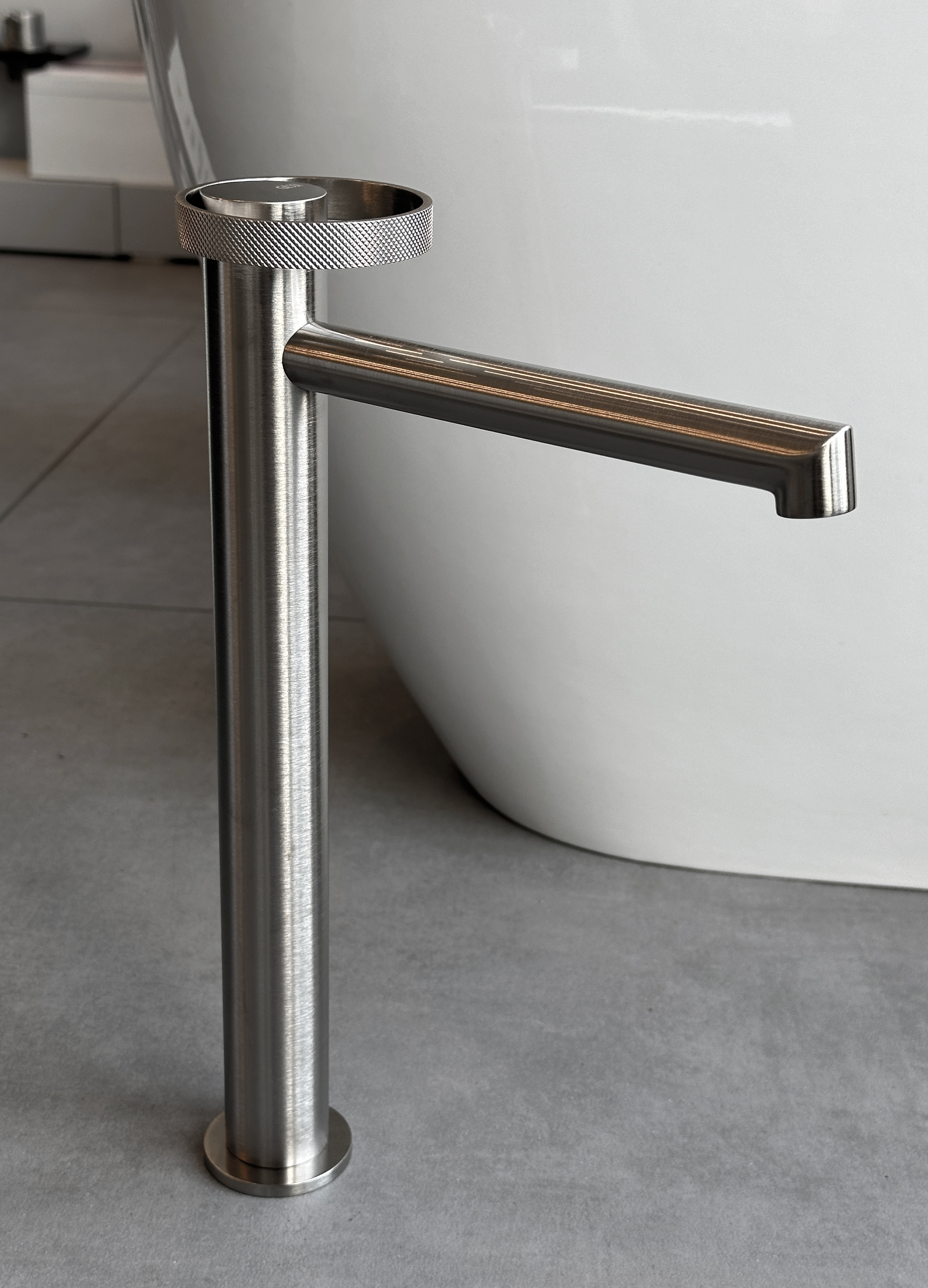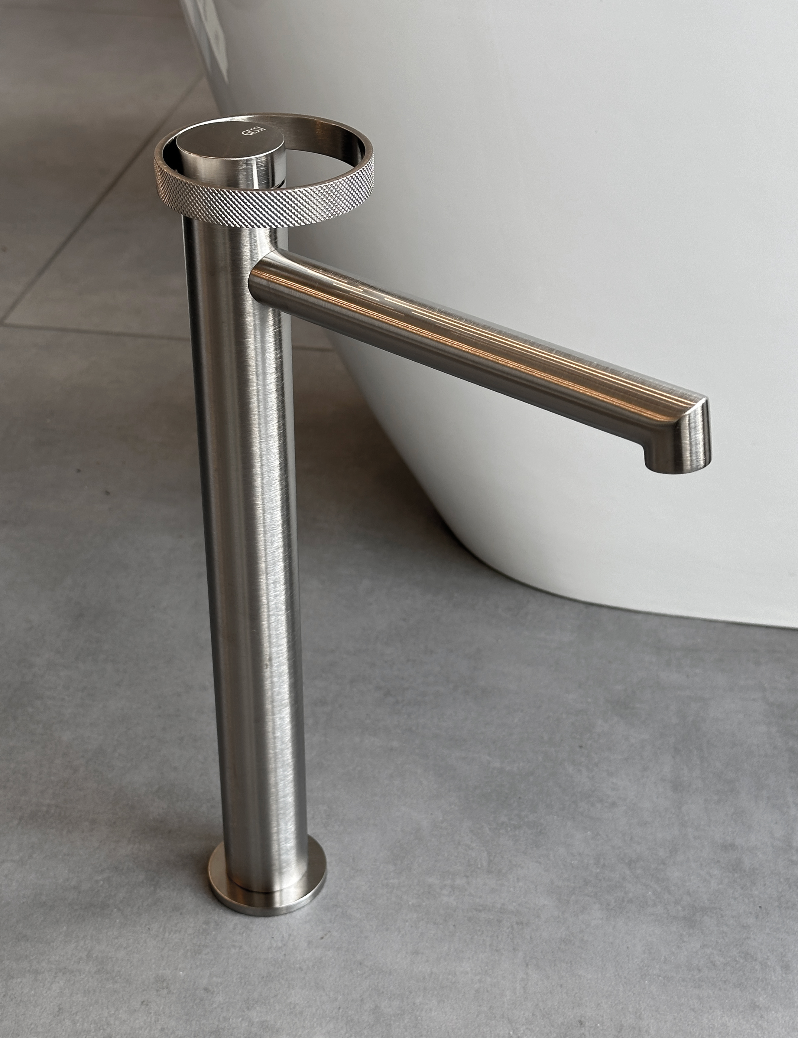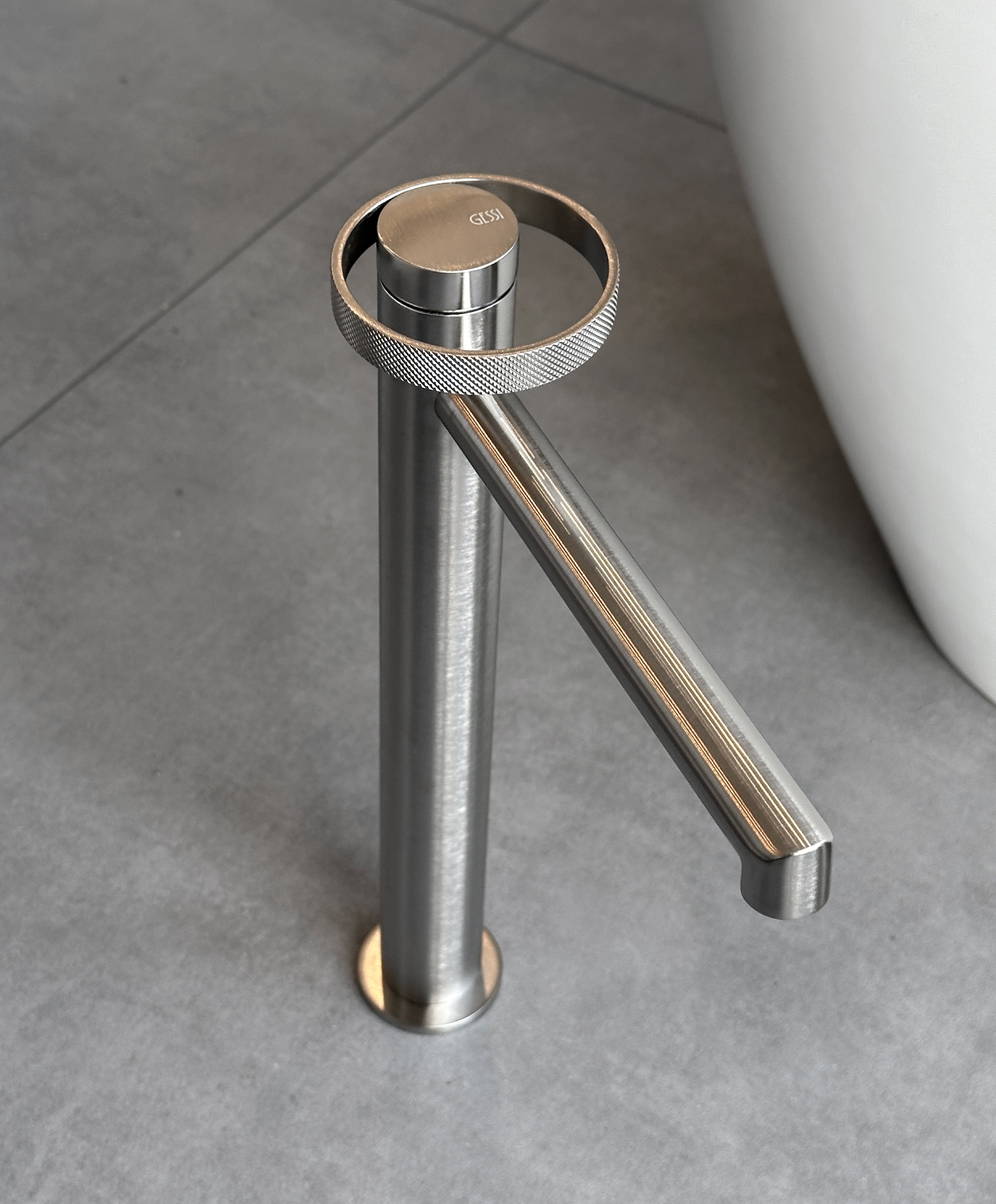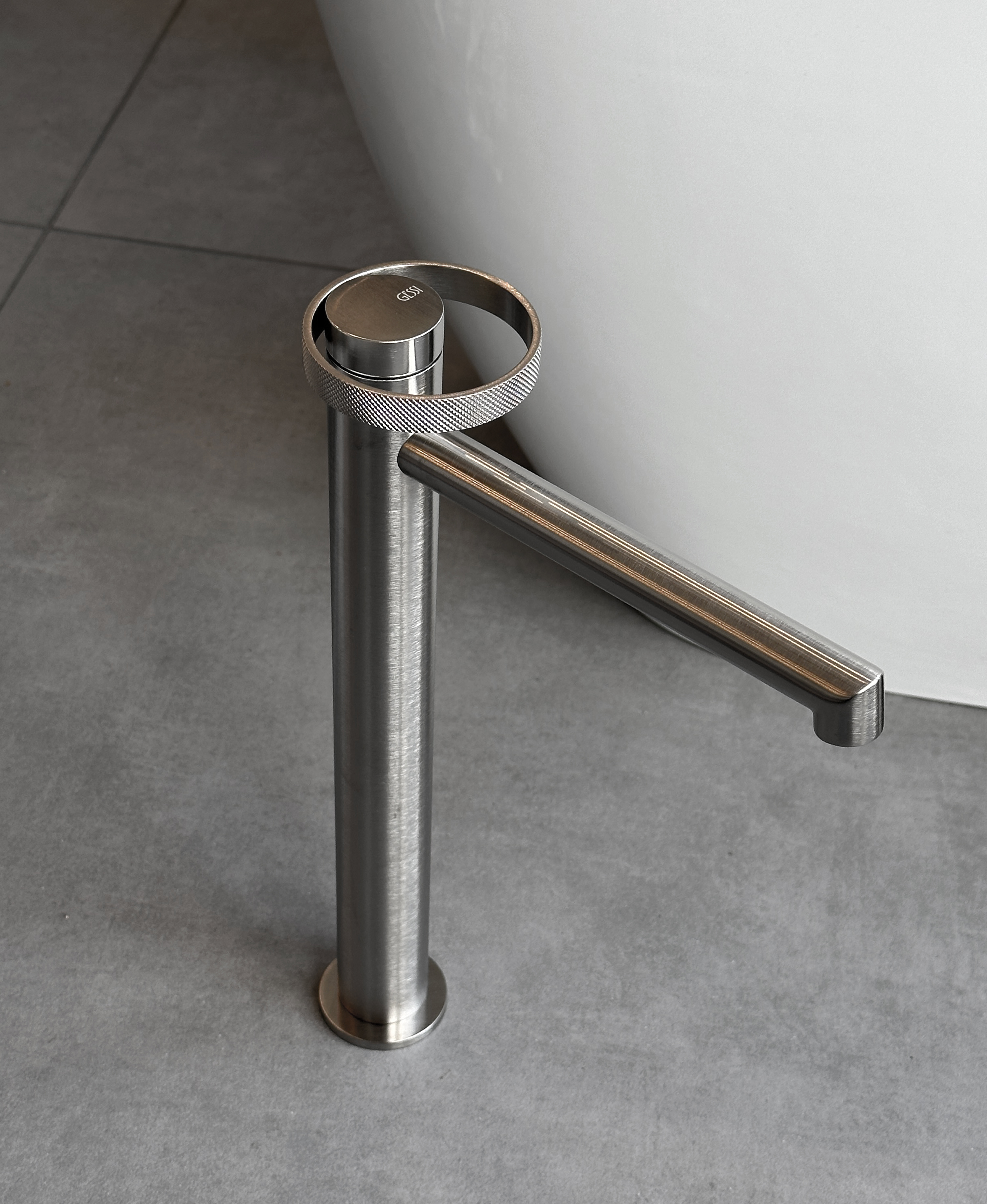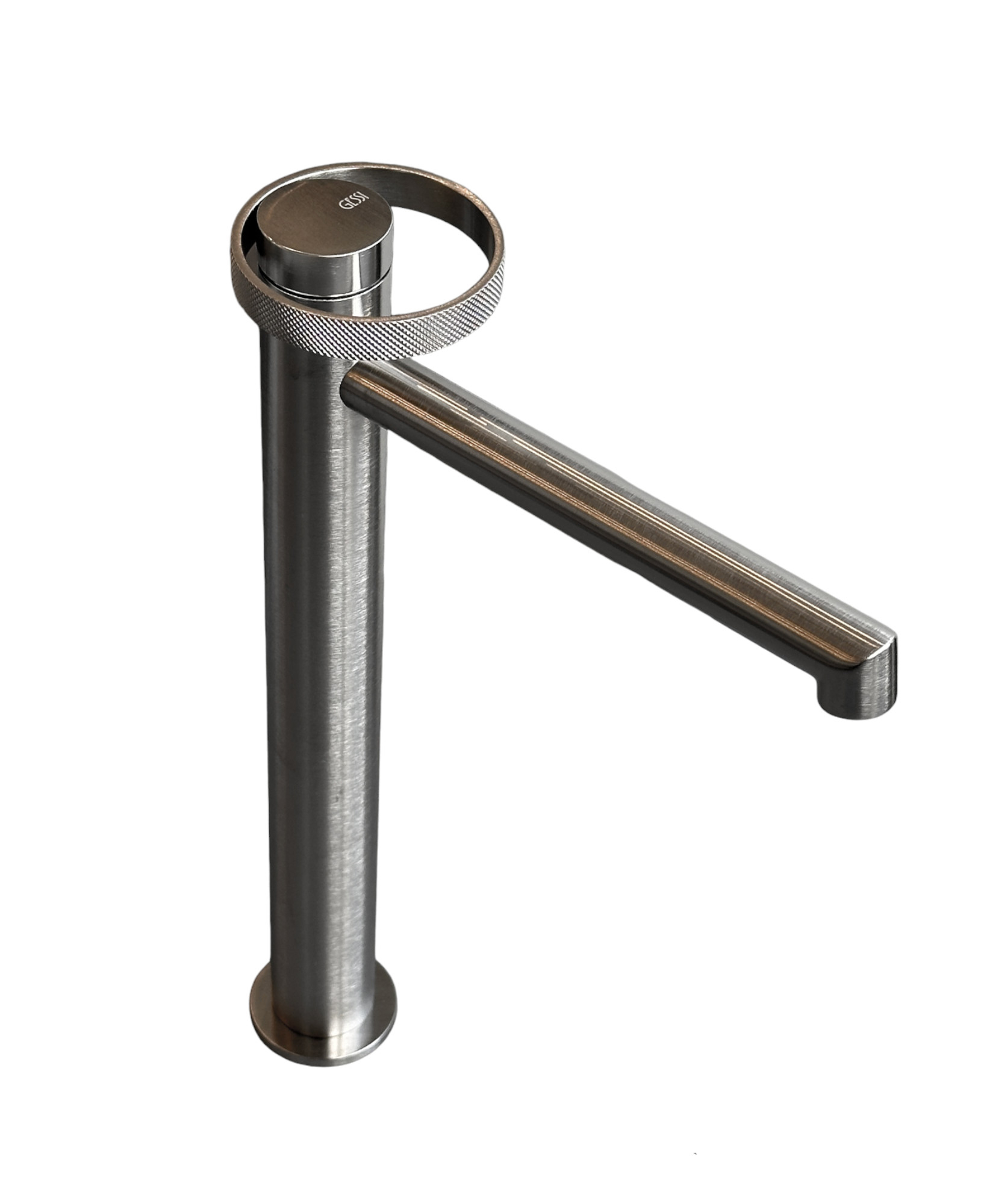 Gessi Anello Bateria umywalkowa wysoka z długą wylewką bez korka finox brushed nickel 63306.149