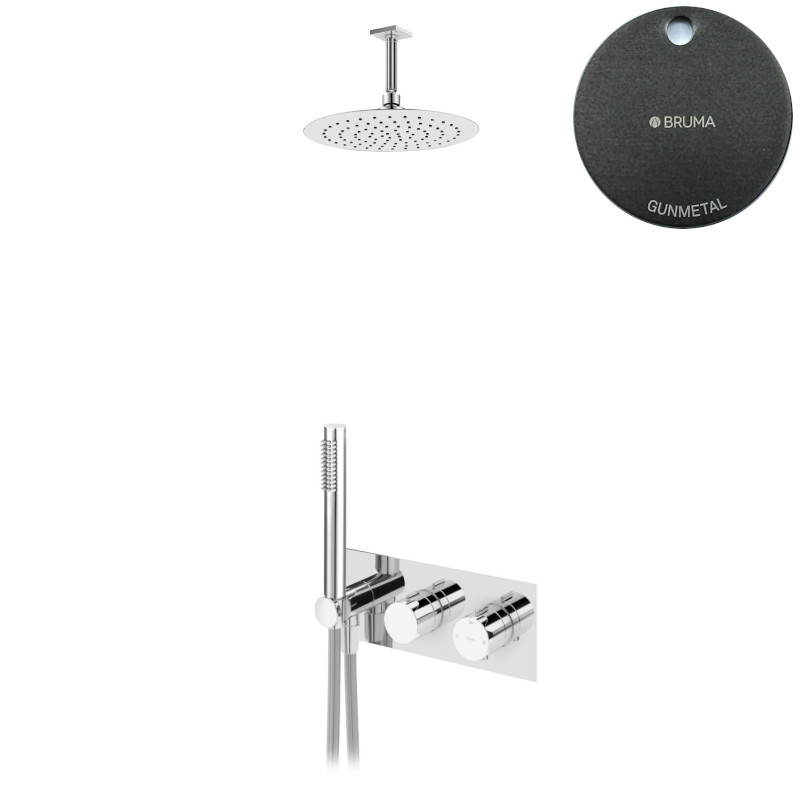 Bruma Breeze Zestaw natryskowy Ø 250 mm termostatyczny podtynkowy z ramieniem sufitowym Gunmetal 1874901MG