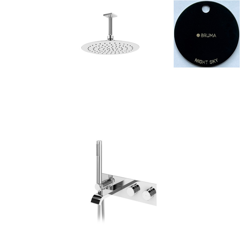 Bruma Breeze Bateria wannowo-natryskowa termostatyczna podtynkowa z deszczownicą sufitową Ø 250 mm Night Sky 1873601NS