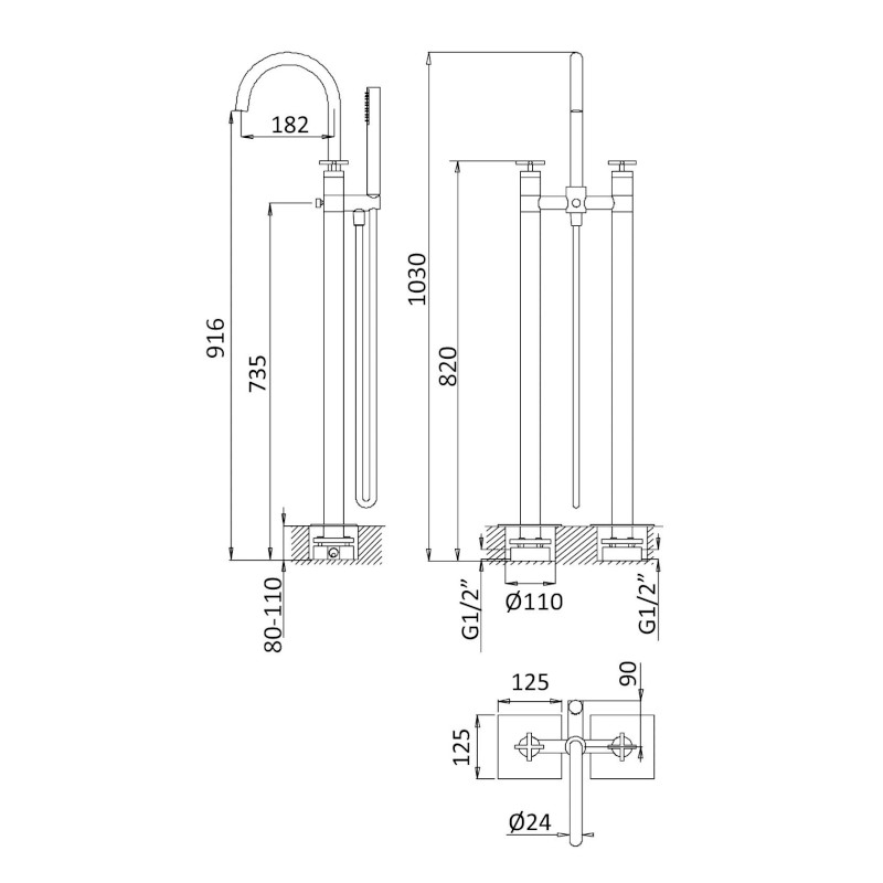 Bruma Hera Bateria wannowo-natryskowa wolnostojąca Sunset 1068100SS