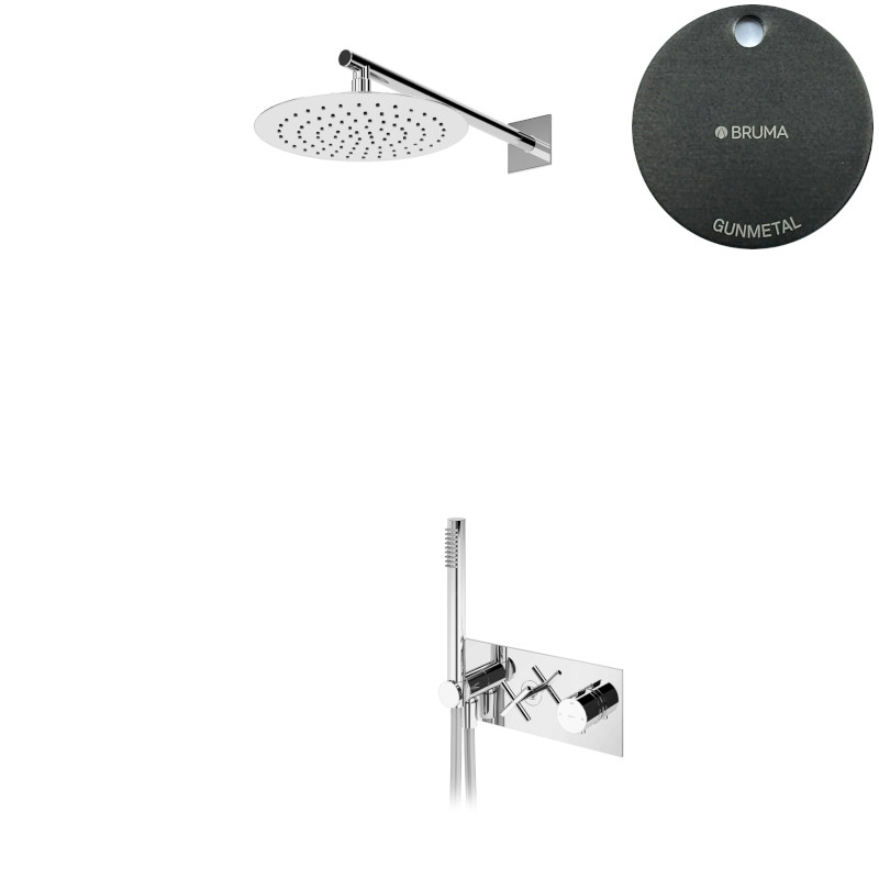 Bruma Hera Zestaw wannowo-natryskowy termostatyczny podtynkowy Ø 250 mm z ramieniem ściennym Gunmetal 1065940MG