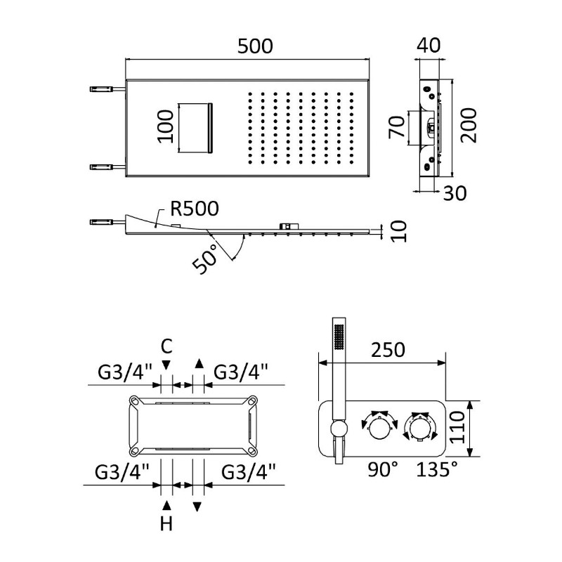 Długość deszczownicy: 500 mm